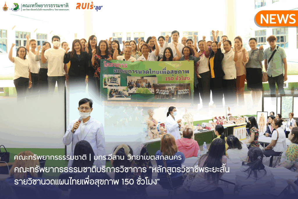 วันที่ 16 มิถุนายน 2568 นำโดย คณะผู้บริหาร คณาจารย์ และเจ้าหน้าที่ ให้บริการวิชาการ“หลักสูตรวิชาชีพระยะสั้นรายวิชานวดแผนไทยเพื่อสุขภาพ 150 ชั่วโมง รุ่นที่ 12” ให้กับประชาชนผู้สนใจด้านการนวด ซึ่งผู้ผ่านการอบรมจะได้รับรองจากกรมสนับสนุนบริการเพื่อสุขภาพ เพื่อให้ผู้เข้าอบรมนำความรู้และทักษะในการอบรมไปประกอบอาชีพหรือดูแลสุขภาพตนเองและครอบครัวได้ ณ อาคารวิทยาศาสตร์สุขภาพ คณะทรัพยากรธรรมชาติ มทร.อีสาน วิทยาเขตสกลนคร