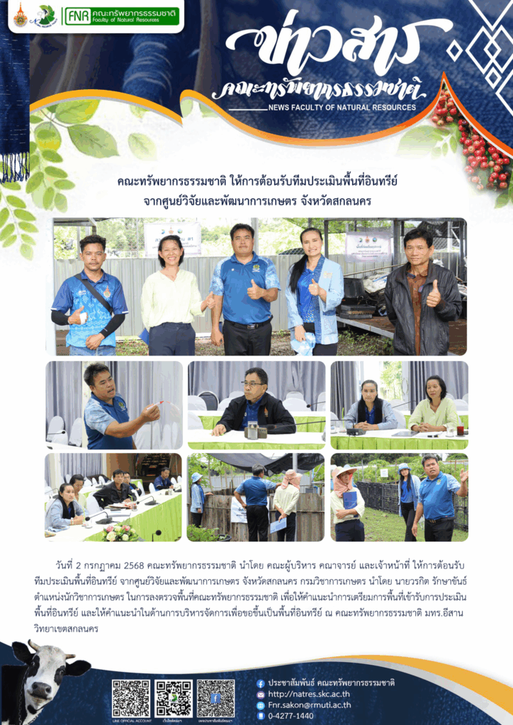 คณะทรัพยากรธรรมชาติ ให้การต้อนรับทีมประเมินพื้นที่อินทรีย์ จากศูนย์วิจัยและพัฒนาการเกษตร จังหวัดสกลนคร