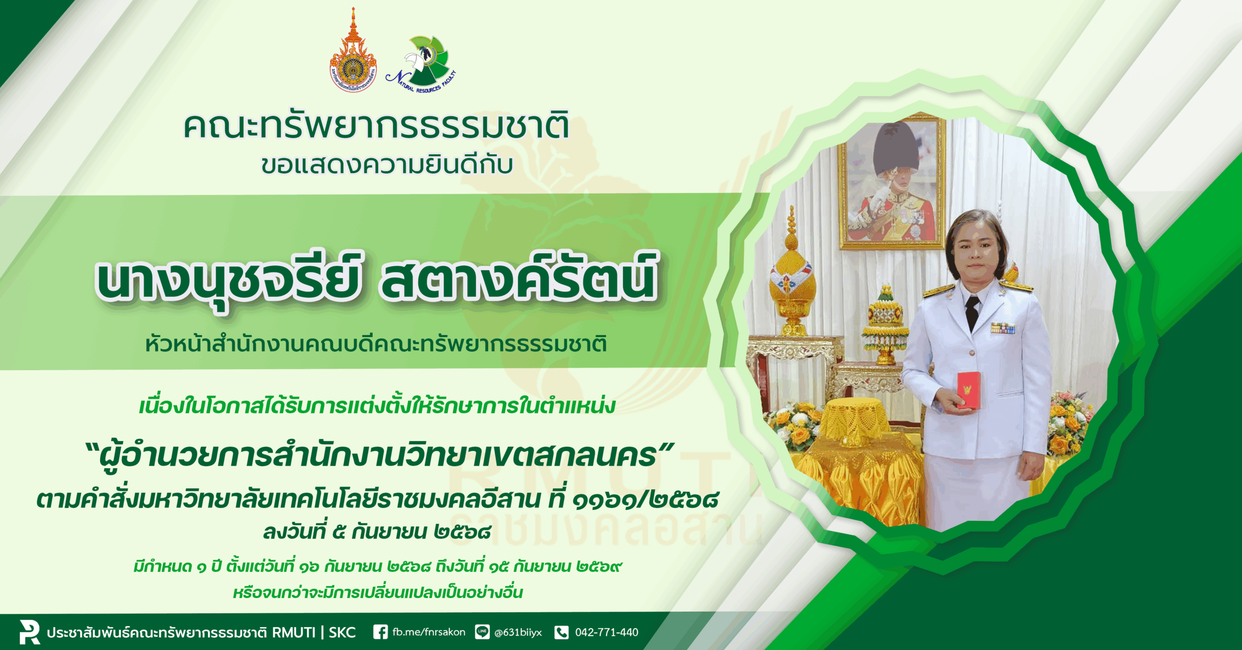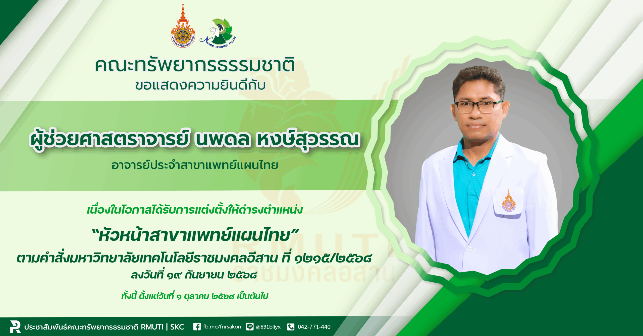 ขอแสดงความยินดีกับบุคลากรคณะทรัพยากรธรรมชาติ